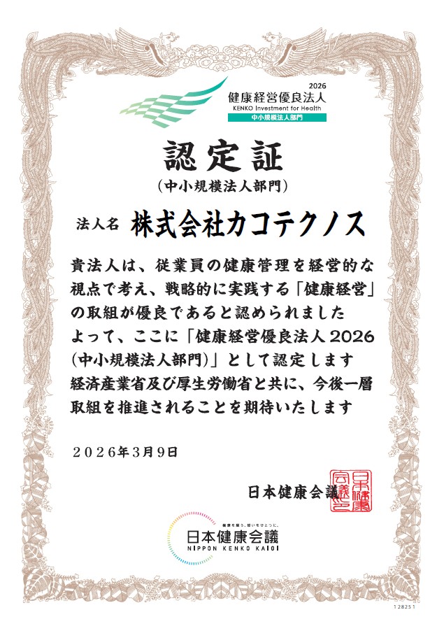 従業員の健康管理を経営的な視点で捉え、戦略的に実践する「健康経営」の取り組みが優良であると認められ、当社は「健康経営優良法人2026(中小規模法人部門)」に認定されました。なお、本認定は今回で3回目となります。